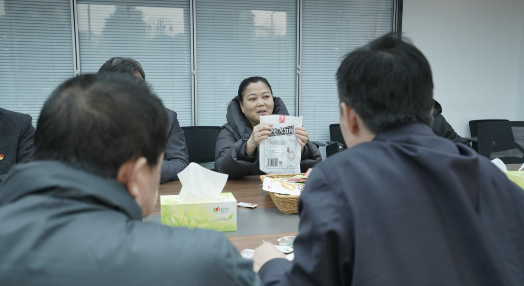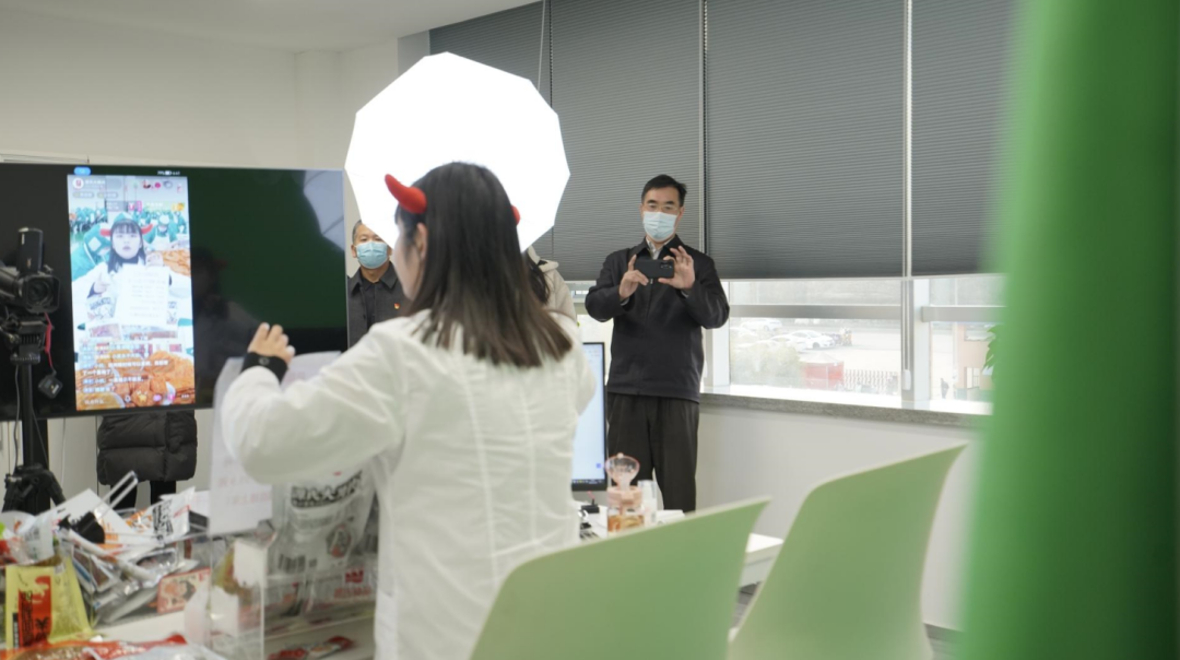 譚董帶領大家先在一樓展示廳觀看了源氏企業(yè)宣傳片,讓來賓們初步了解了公司規(guī)模以及生產(chǎn)流程,品牌中心焦夢圓陪同進行實時講解,讓大家更快速地感受到源氏食品的主營產(chǎn)品、發(fā)展成果和企業(yè)文化。隨后,一行人來到三樓新媒體運營中心,并進入直播間參觀,現(xiàn)場問詢和感受源氏食品抖音平臺直播情況,李文峰副會長表示源氏食品全平臺電商運營模式非常值得學習和借鑒。